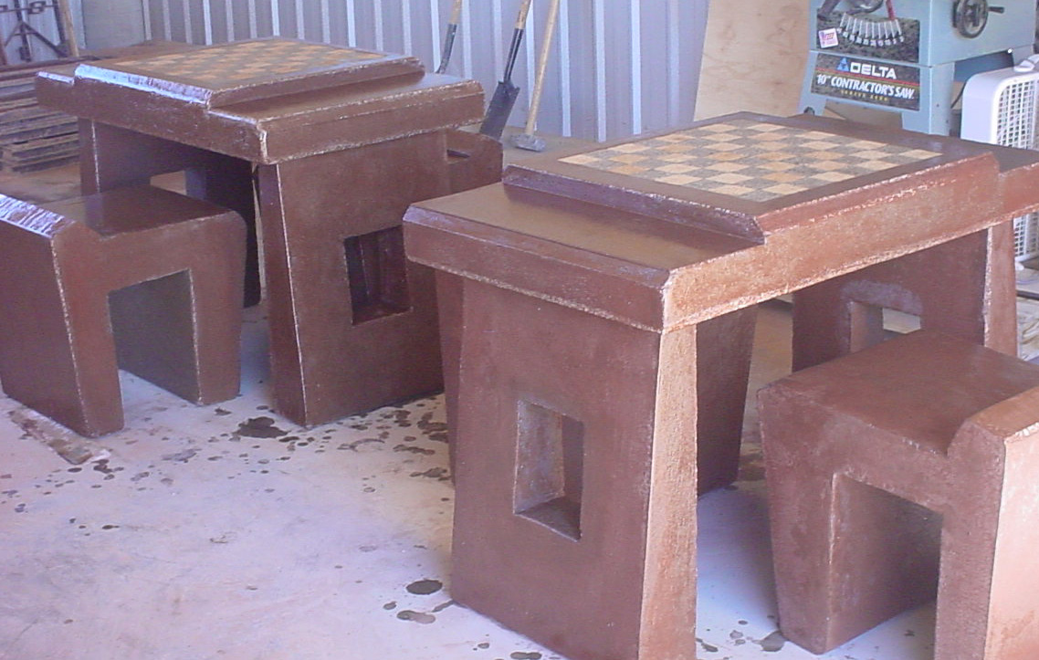 Kamron Coleman custom concrete chess tables for NY school