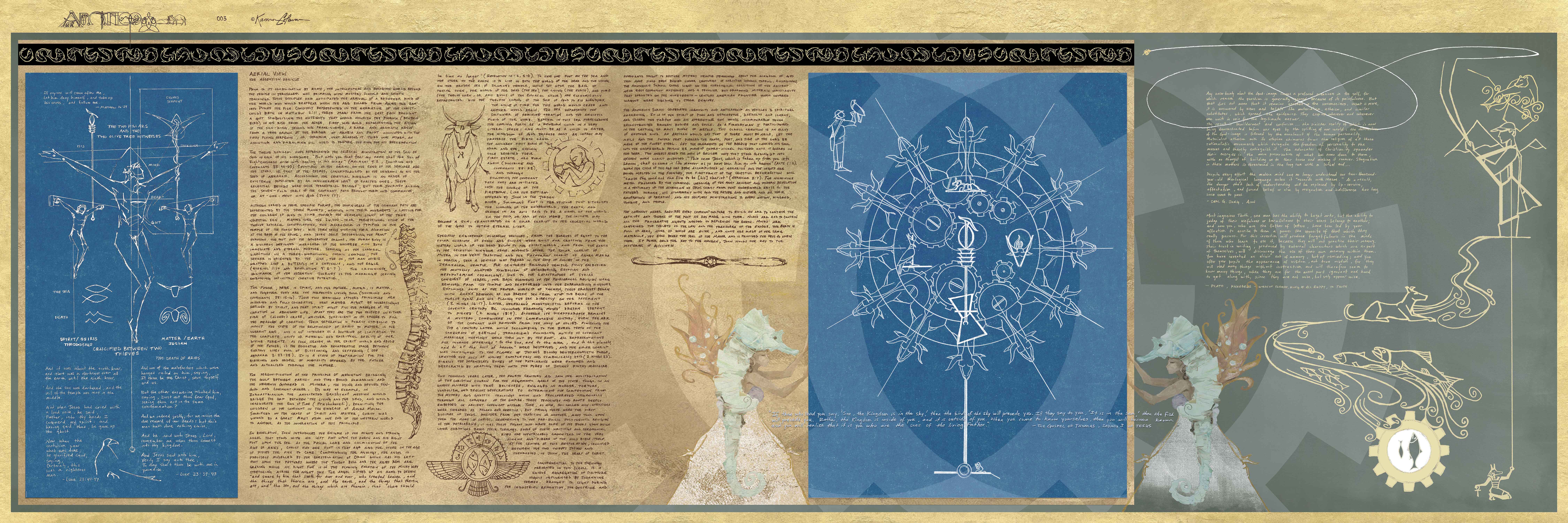 Although varied in their specific forms, the seven seals of the covenant path are represented by the seven planets, weaving with their movements a lattice for the children of God to climb toward the heavenly light of the true celestial sun. Mapped over the 26,000-year precessional cycle of the twelve zodiacal constellations, this macrocosm is typified in the temple of the human body. With seven seals starting their ascension at the base of the spine, and seven seals descending the front through the gut and the generative organs, the human body is a divinely designed microcosm of the universe with both immediate and eternal purpose. Serving as the cardinal directions on a three-dimensional cosmic compass, the seeker is oriented by the lion, the ox, the man Osiris wrapped like a butterfly in a chrysalis, and the eagle (Ezekiel 1:10 and Revelation 4:6-7). The crowning ordinance of the ascension journey is the marriage sealing embodying infinitely creative potential.